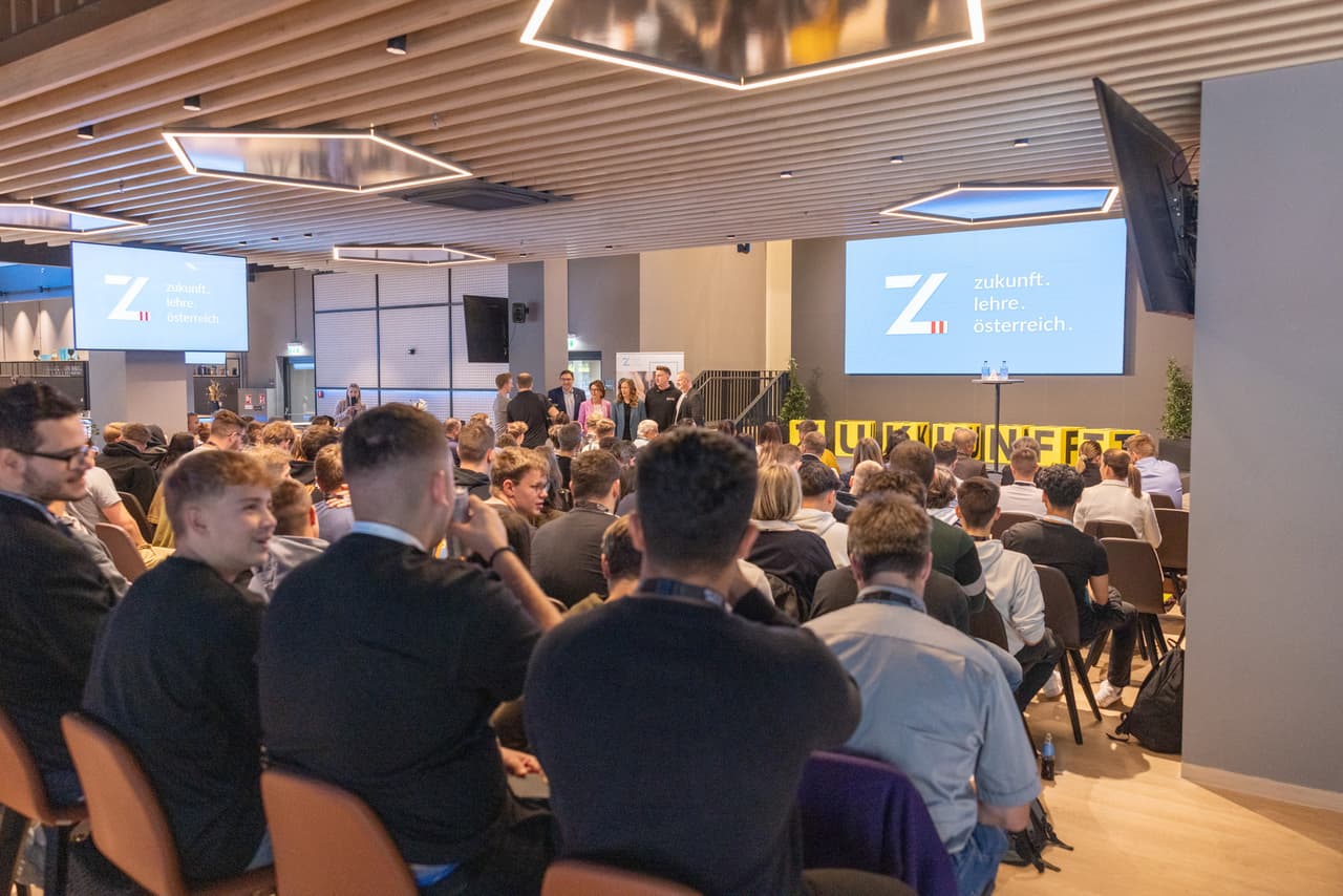Zum großen Lehrlingstag in der Raiffeisen Arena des LASK lud die Initiative zukunft.lehre.österreich. 120 Lehrlinge sowie 65 Ausbilderinnen und Ausbilder fanden sich am Dienstag im BWT Business Club ein, um sich mit gezielten Workshops weiterzubilden.