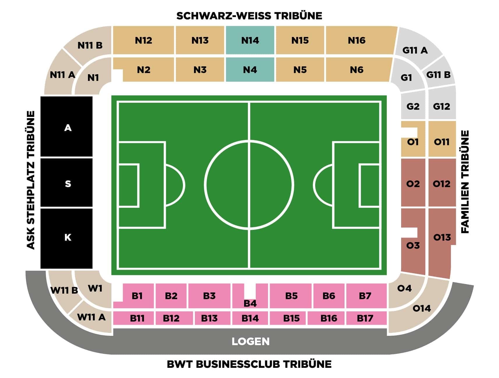 • Schwarz Weiß Tribüne (Sektoren N2, N3, N5, N6, N12, N13, N16) + B1, B7