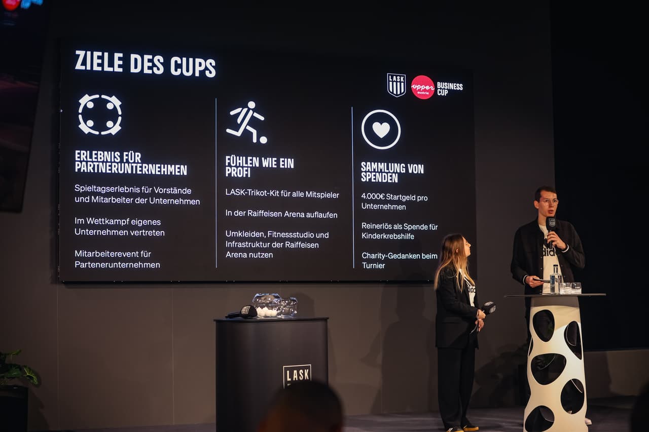 Die fünf Leading Partner BWT, backaldrin, Raiffeisenlandesbank OÖ, Energie AG und Zipfer, die Premium Plus Partner HYPO OÖ, Aspöck Systems GmbH und die Linz AG sowie die Premium Partner Oberndorfer und Molto Luce nehmen an dem Bewerb teil und erhalten für einen Tag die Gelegenheit, in die Rolle der Stars am grünen Rasen zu schlüpfen. Zugleich soll das Turnier dazu dienen, die Verbindung zwischen Sport und Wirtschaft weiter zu stärken. „Fußball und Wirtschaft haben viele Gemeinsamkeiten. Es geht um das Team, Fairness, aber auch um Einsatz und Siegeswillen. Mit dem Upper Austria Business Cup wollen der LASK und das Land OÖ diese Gemeinsamkeiten in den Mittelpunkt stellen und eine neue Plattform schaffen, um sich zu vernetzen“, sagte LH Mag. Thomas Stelzer in einer Videobotschaft.