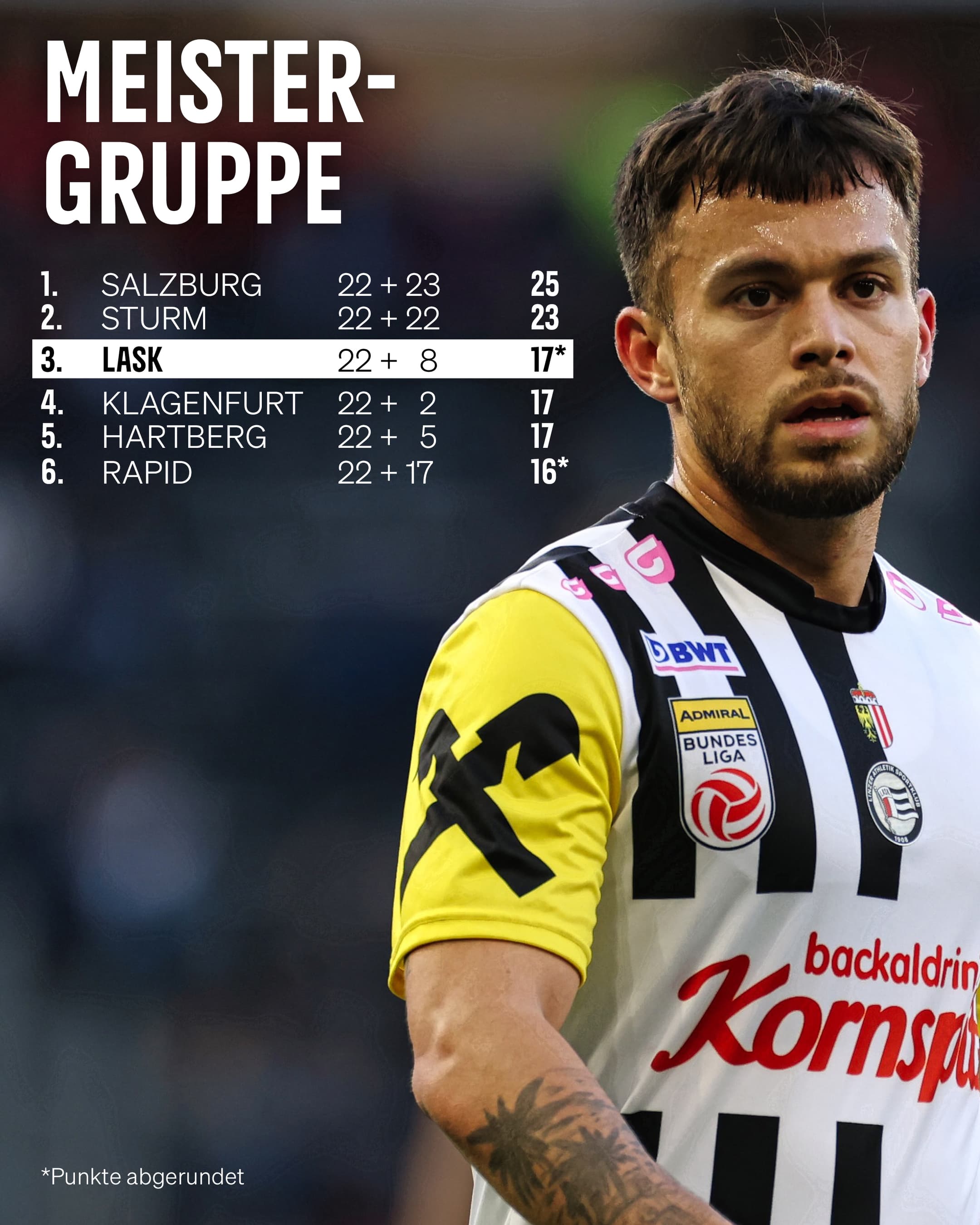 22 Runden sind absolviert, die Punkte wurden halbiert – es ist alles angerichtet für die heiße Saisonphase in der ADMIRAL Bundesliga. Wie in der vergangenen Spielzeit nimmt der LASK die verbleibenden zehn Runden in der Meistergruppe als Tabellendritter in Angriff.