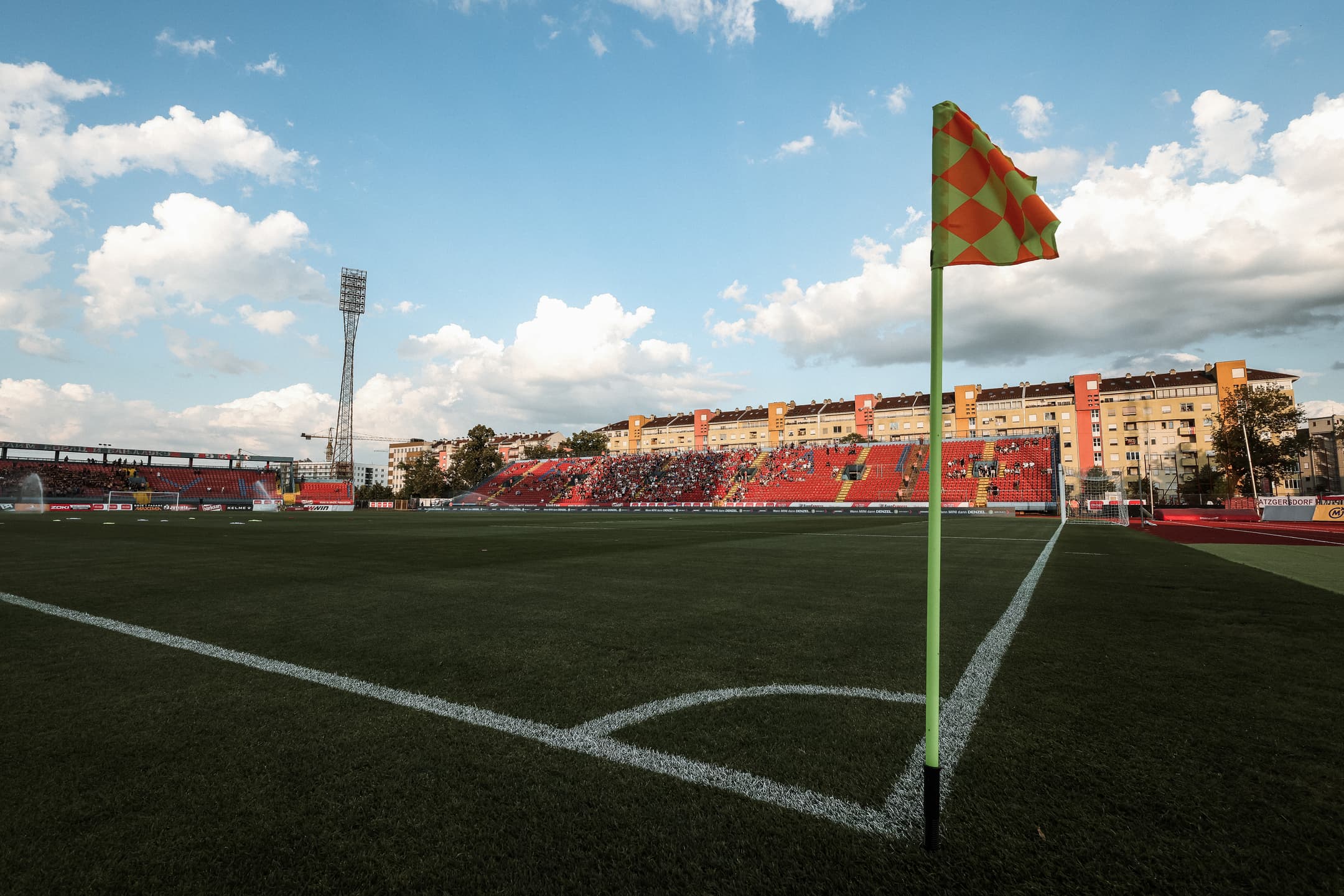 Der Auswärtssektor im Gradski Stadion befindet sich am seitlichen Rand der Gegengeraden.