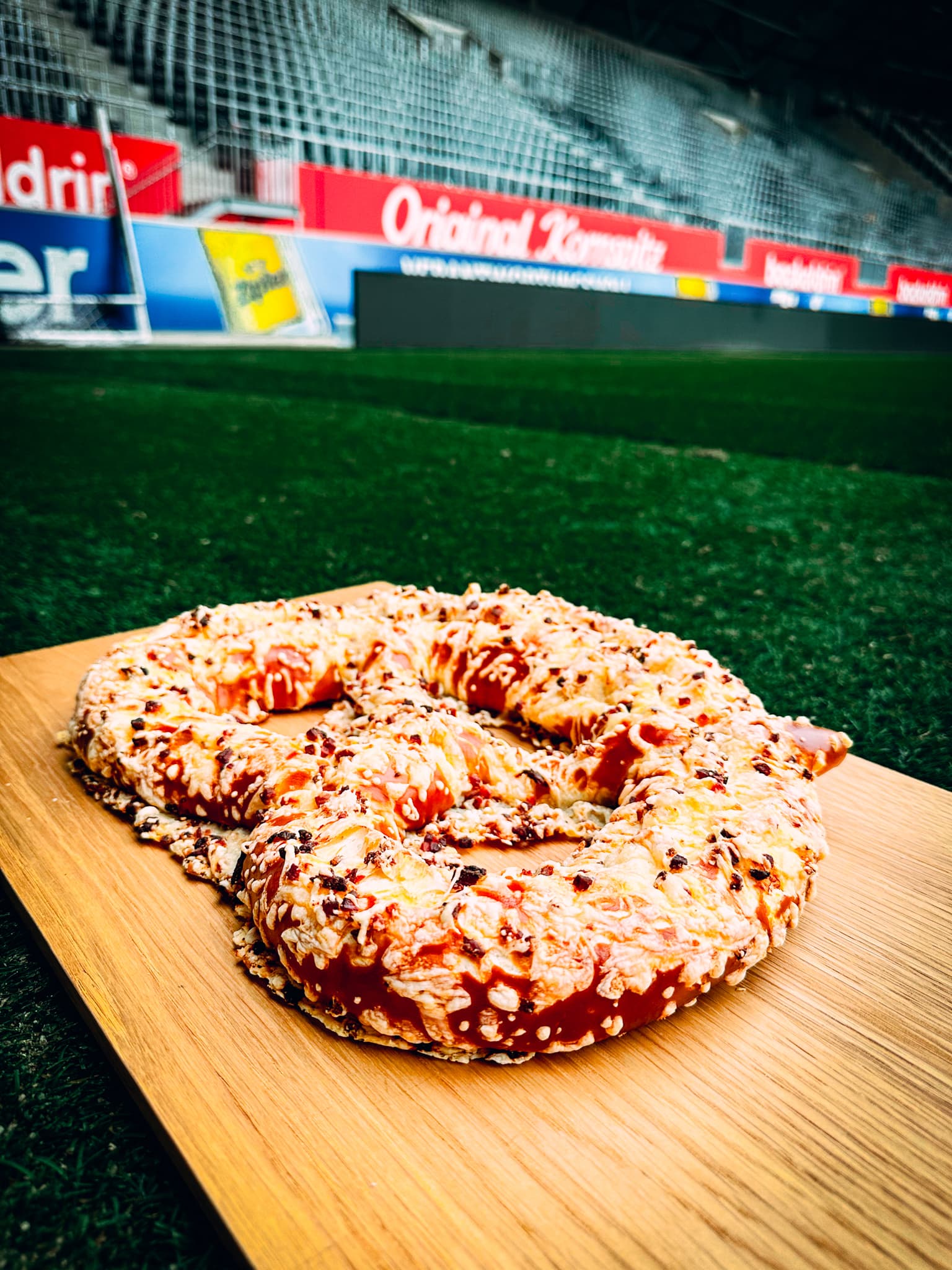 --> 0,8 kg Laugenbreze mit Käse und Speck überbacken