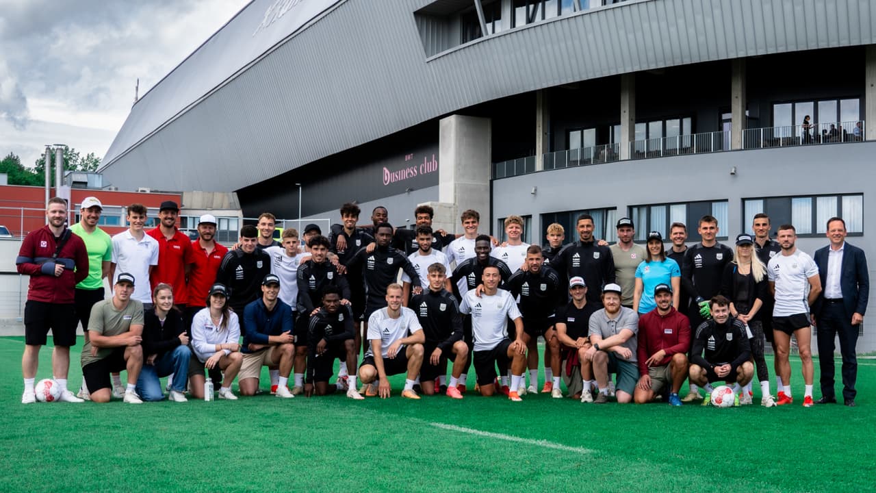 Normalerweise sieht man sie nur im Winter auf der Skipiste, heute sind sie in die Welt des Fußballs eingetaucht: das Skicross Team Austria. Anlässlich ihres Konditionstrainingscamps im Olympiastützpunkt Linz waren 12 Sportlerinnen und Sportler zu Gast in der Raiffeisen Arena. Neben einer Stadiontour haben die Winterathleten auch die letzten Minuten der Trainingseinheit unserer Athletiker beobachtet. Ein gemeinsames Mittagessen im Dunkelschwarz Restaurant rundete den Besuch in der Raiffeisen Arena ab.