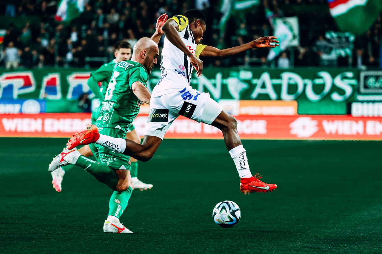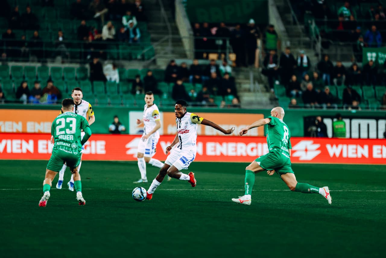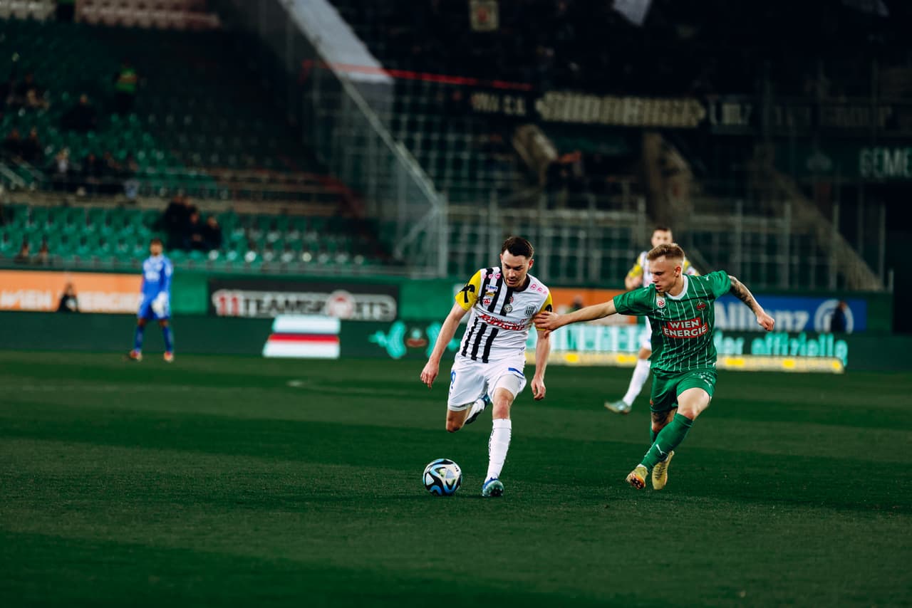 Dessen ungeachtet wussten die Athletiker mit einem ordentlichen Auswärtsauftritt zu überzeugen. Während die Hütteldorfer lediglich in Ansätzen über die linke Seite Gefahr ausstrahlten, kombinierten sich die Schwarz-Weißen phasenweise gefällig Richtung letztes Drittel. Dort mangelte es wie schon zuletzt in manchen Situationen an den richtigen Entscheidungen, der Präzision im finalen Zuspiel sowie dem Quäntchen Glück im Abschluss. So scheiterte Marin Ljubicic nach schneller Kombination an Torhüter Hedl (17.), ein abgefälschter Versuch von Usor landete knapp neben dem Gehäuse (36.). Auf Seiten der Hütteldorfer verfehlte Isak Jansson sein gewünschtes Ziel (23.).