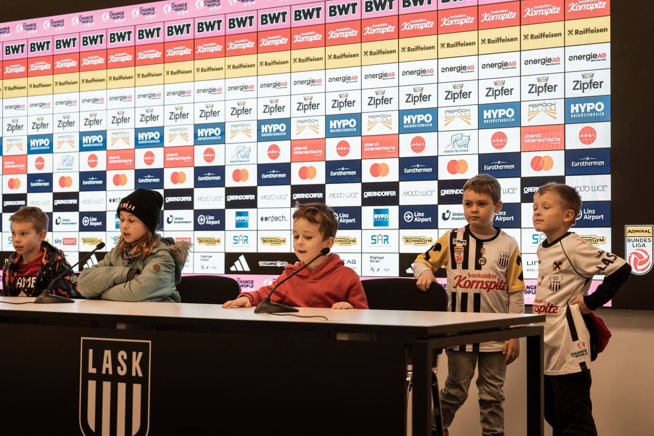 Auf außergewöhnliche Erlebnisse dürfen sich auch zehn weitere Kinder freuen, die am Freitag die Spieltags-Pressekonferenz begleiten werden. Zehn über ein Gewinnspiel in den Oberösterreichischen Nachrichten ermittelte Kinder finden dabei die einzigartige Möglichkeit vor, ihre Fragen an Cheftrainer Markus Schopp und einen LASK-Profi zu richten.