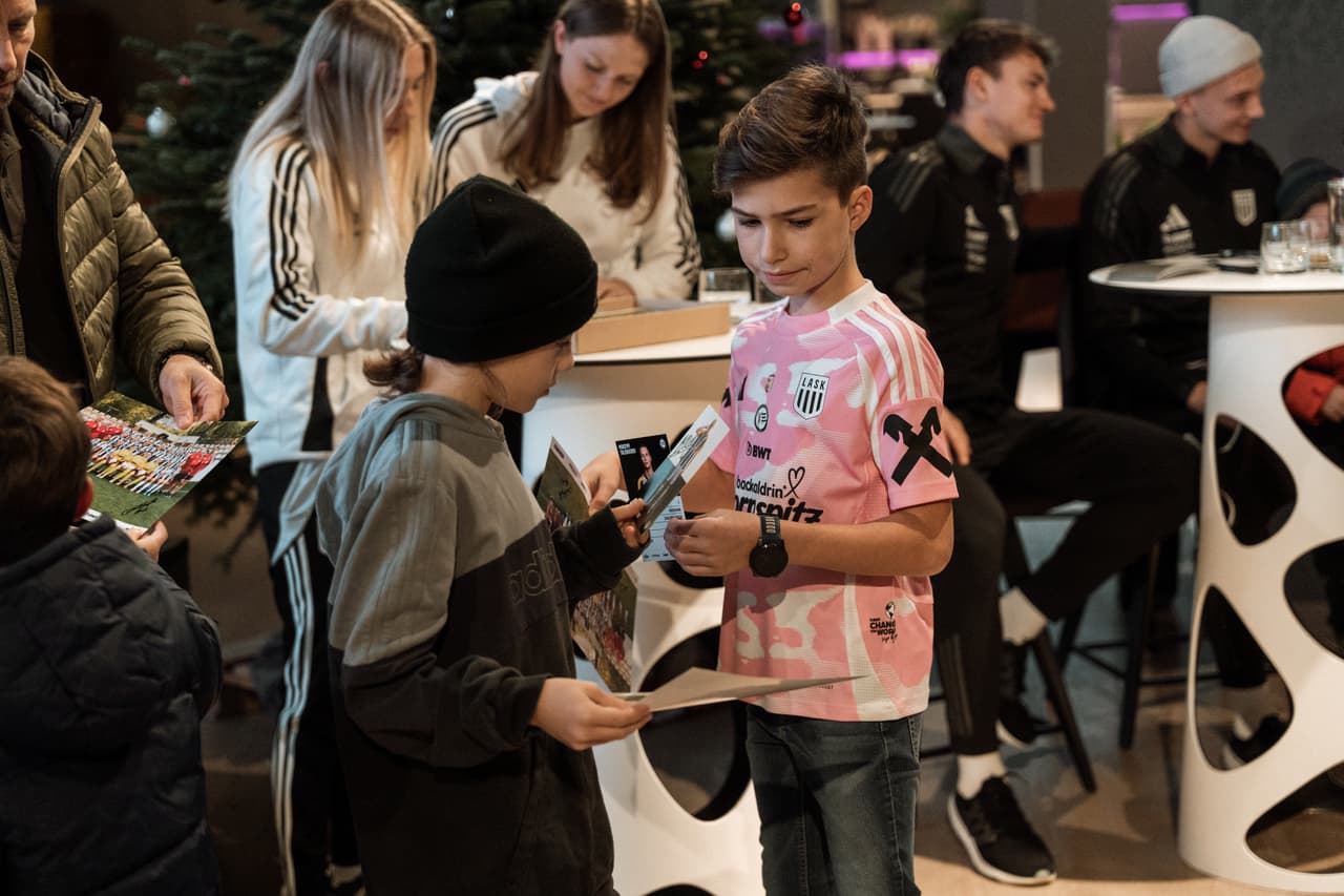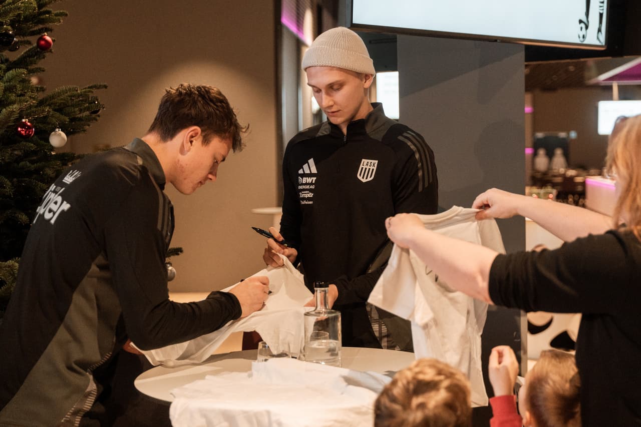 Dazu trugen freilich auch die LASK-Profis Maksym Talovierov und Lukas Jungwirth sowie die Athletikerinnen Madlene Kerschbaummayr und Lisa Farthofer bei, die in den Räumlichkeiten des BWT Business Clubs fleißig sämtliche Autogrammwünsche erfüllten und den jungen Fans ein Lächeln ins Gesicht zauberten. „Das ist etwas Wunderschönes, wenn man das Lächeln der Kinder sieht und sie begeistern kann“, war Kerschbaummayr höchst angetan von der Vielzahl an Autogrammjägern. Dem konnte Torhüter Jungwirth, der beim LASK den Weg vom leidenschaftlichen Nachwuchskicker zum Profi gemeistert hat, nur beipflichten. „Es ist ein kleiner Traum, der für einige Kinder in Erfüllung geht. Ich denke, es ist eine der wichtigsten Sachen, bereits die jungen Fans für den Verein zu begeistern und sie hinter die Kulissen blicken zu lassen“, sagte der 20-jährige Keeper.
