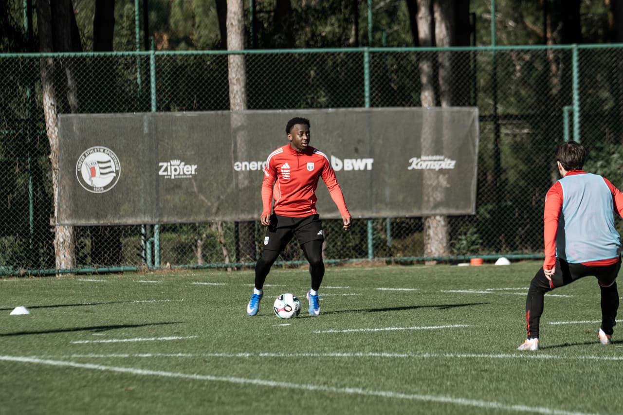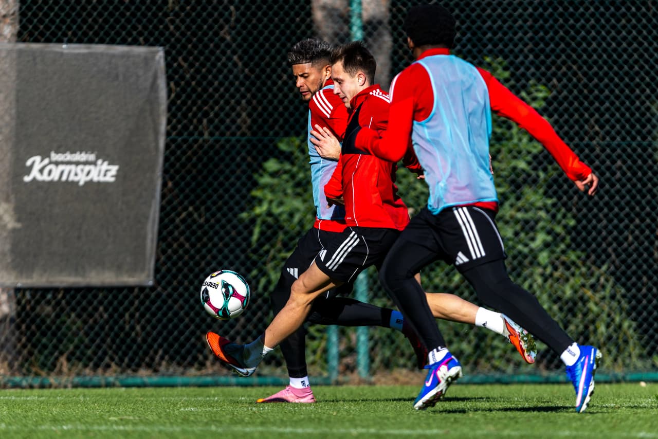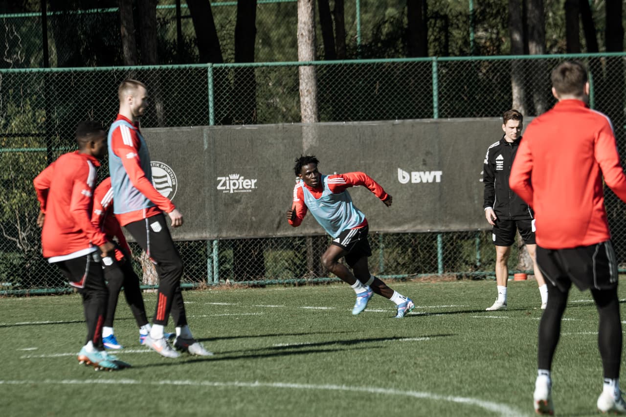 Der Ärger sollte rasch verrauchen, wie eine kurze Tanzeinlage auf dem Weg vom Mittagessen Richtung Zimmer belegte, ehe es am Nachmittag ein weiteres Mal auf das Fußballergrün ging - Trainingseinheit Nummer elf in Belek. Auf den Trainingsplan schafften es neben dem obligatorischen "Hösche" hochintensive Rondoformen, dazu gesellten sich taktische Abläufe inklusive zahlreicher Torabschlüsse. Der finale Wettkampf durfte auch zur zweiten Tageshälfte nicht fehlen: Jung gegen Alt hieß das Duell diesmal, wobei sich George Bello und Melayro Bogarde jeweils im Team der Routinierten wiederfanden. Besagte Erfahrung dürfte dieser Truppe letztlich wohl auch zum Triumph verholfen haben, womit der Tag auch für das frischgebackene Social-Media-Duo mit einem Erfolgserlebnis endete.