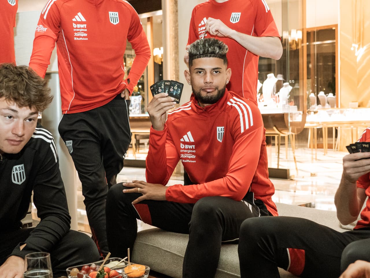 Während hierzulande der strenge Frost Einzug hält, verwehrte die Mehrheit des rund 45-köpfigen LASK-Trosses der Winterjacke die Aufnahme ins Gepäck für den Flieger Richtung türkische Riviera, wo angenehme Temperaturen um die 18 Grad lockten. Auch deshalb herrschte prächtige Stimmung unter jenen 27 Kaderspielern, welche die Reise antreten durften und intensiven zehn Tagen entgegenblickten. Mit dem Mannschaftsbus sowie zwei Kleinbussen starteten die Athletiker den Trip am frühen Vormittag, die erste Zwischenstation führte von der Raiffeisen Arena zum Flughafen Wien Schwechat, wo man pünktlich am frühen Nachmittag gen Antalya abhob. Freilich nicht, ohne sich zuvor das Vorrecht auf einen Fensterplatz auszuspielen, inklusive eines emotionalen Jubelausbruches von Melayro Bogarde nach dessen Triumph im Schere-Stein-Papier über Teamkollege Moses Usor.