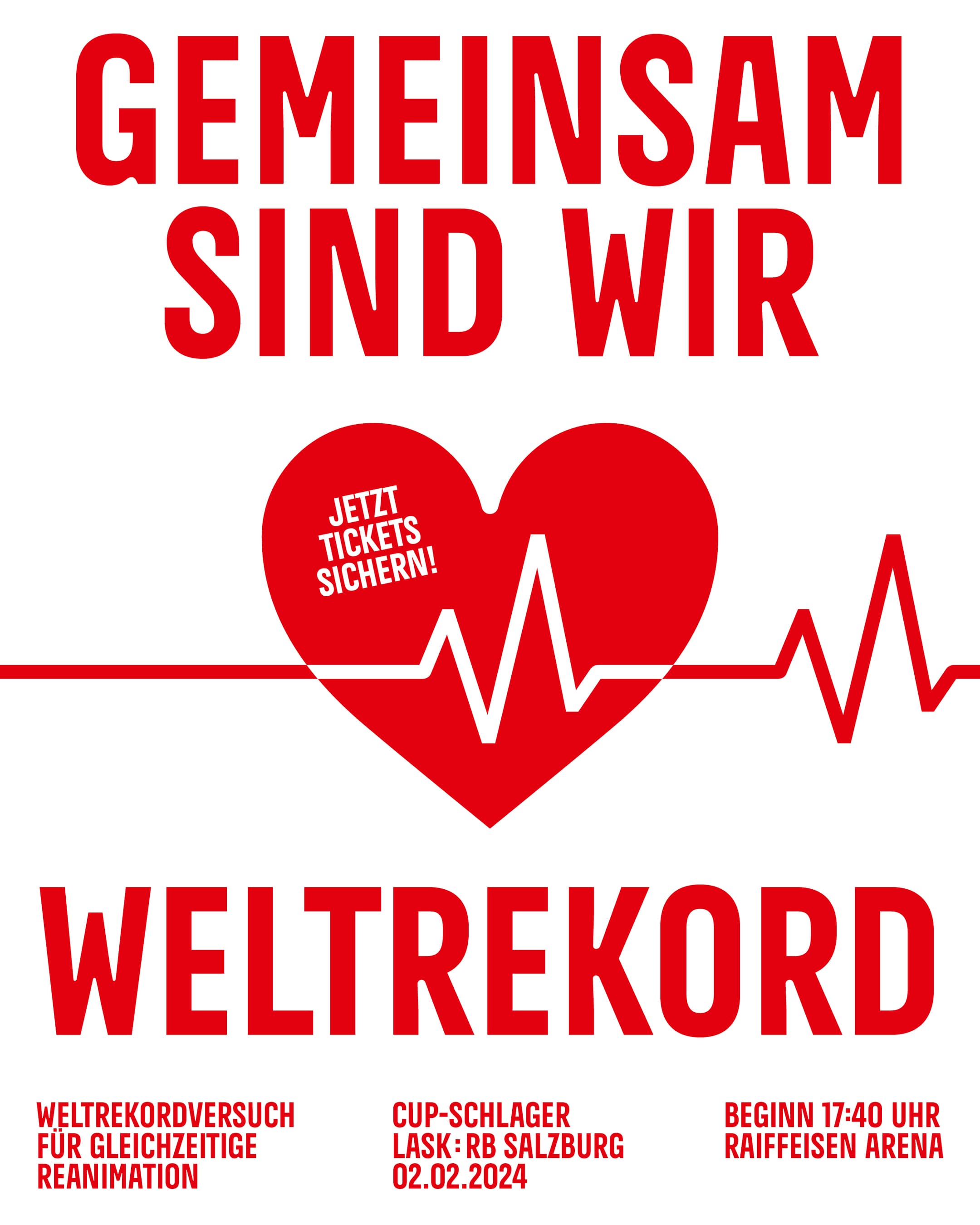 Der derzeitige Weltrekord für gleichzeitige Reanimation, aufgestellt in Münster/Deutschland, liegt bei 12.000 Menschen. Ziel ist, diese Marke im Vorfeld des Cup-Spiels gegen RB Salzburg zu übertreffen und ins Guinness Buch der Rekorde einzuziehen. Dafür erhält jeder Zuschauer vorab ein kleines Herz aus Schaumstoff sowie einen Infofolder. Die Aktion startet rund 20 Minuten vor dem Anpfiff und wird etwa zehn Minuten in Anspruch nehmen, wobei die Dauer der Reanimation zwei Minuten beträgt.