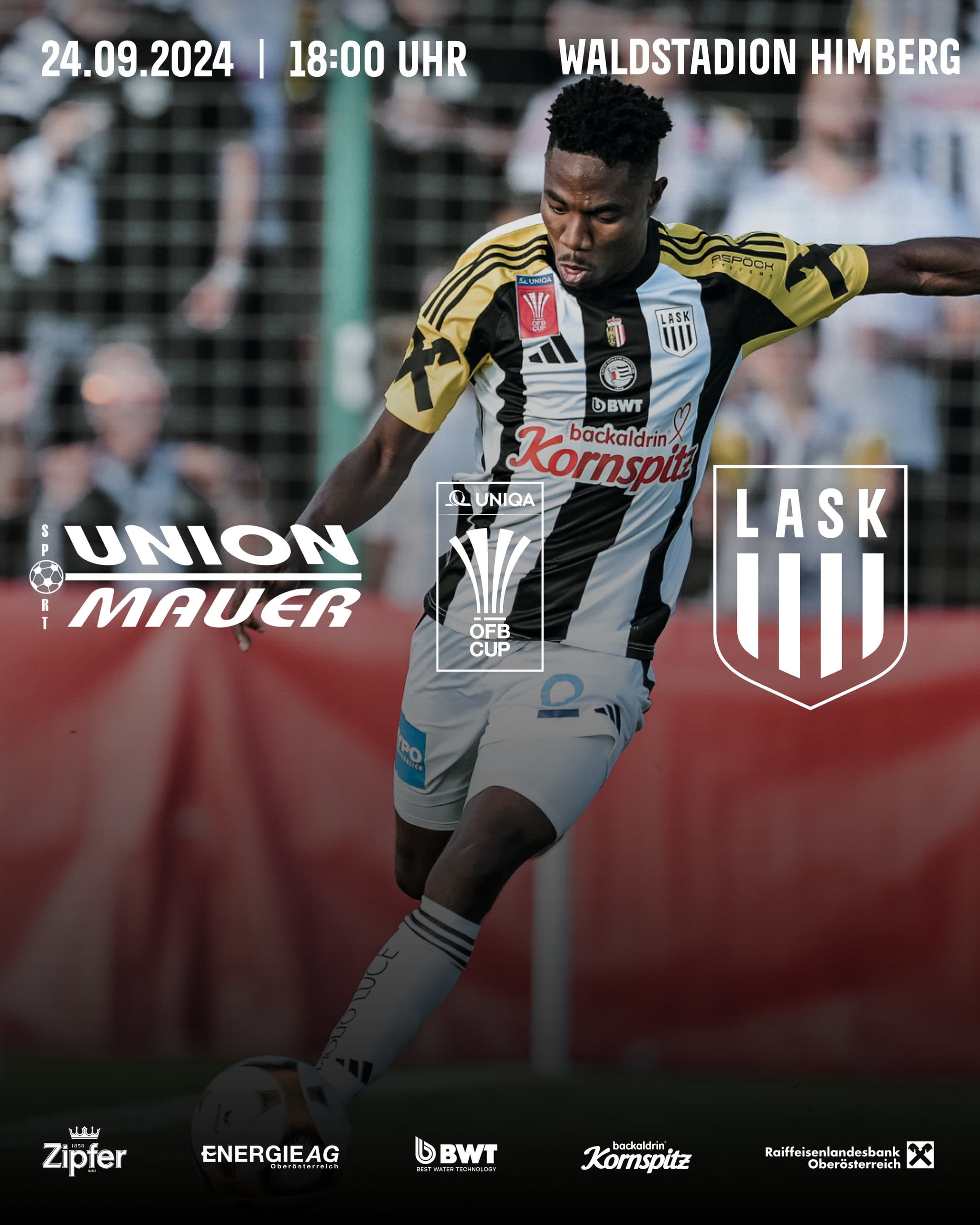 Der LASK trifft im Uniqa ÖFB Cup in der zweiten Runde auf die Union Mauer. Wetterbedingt wurde die Partie auf 24. September 2024, 18.00 Uhr, verschoben. Austragungsort ist das Waldstadion Himberg in Wien.