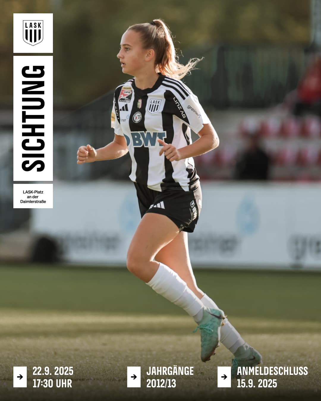 Bist du eine leidenschaftliche Fußballerin mit dem Traum, in die Fußstapfen der LASK-Bundesligaspielerinnen zu treten? Dann ist unsere diesjährige Sichtung genau das Richtige für dich!
