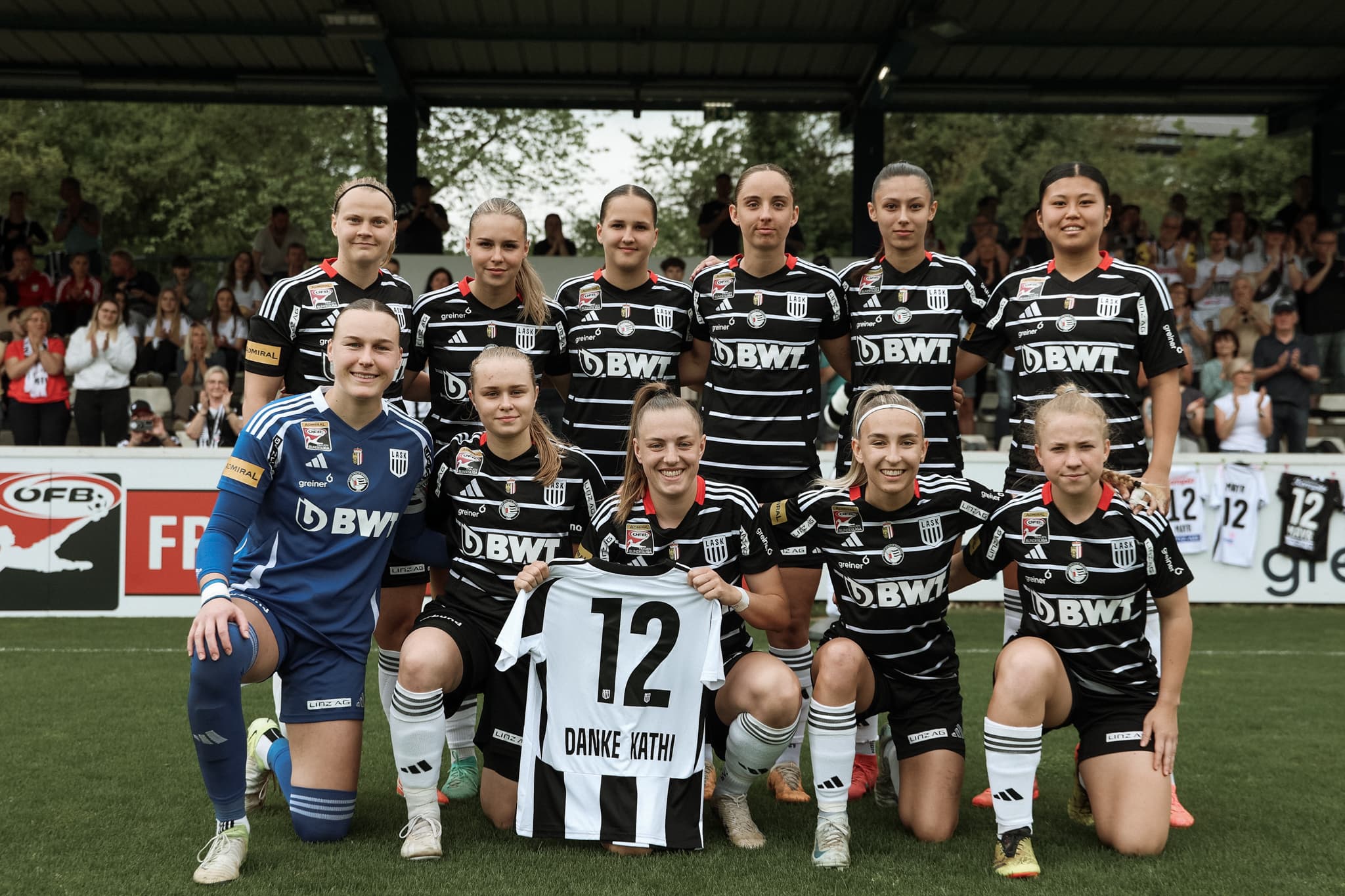 „Ich glaube, ich brauche ein wenig Zeit, um das alles zu verarbeiten. Das war ein sehr emotionaler Tag, und ich kann es noch nicht ganz realisieren“, sagte Kathi Mayr, die an diesem Tag ihr 100. LASK- sowie ihr letztes Heimspiel bestritt. Das erste Highlight des Nachmittags gab es diesmal schon vor dem Anpfiff: Die Volksschulklasse von Kathi durfte als Einlaufkinder fungieren und sorgte auf der Tribüne für lautstarke Unterstützung. Unsere LASK-Premierenspielerin bekam vor dem Match noch ein Trikot überreicht und wurde von Fans und Mannschaft gebührend verabschiedet.