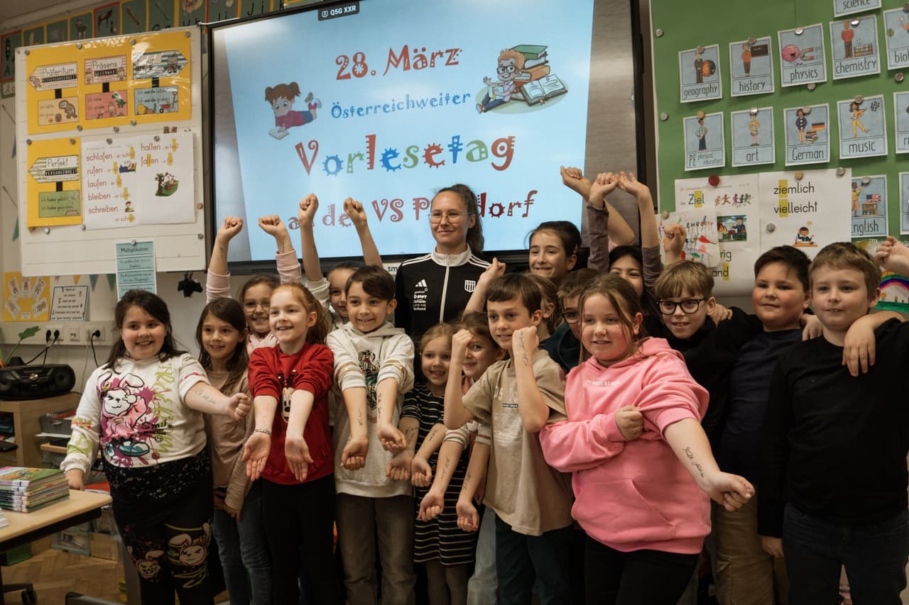 LASK-Keeperin Sarah Trinkl unterstützt österreichweiten Vorlesetag in Volksschule Pinsdorf