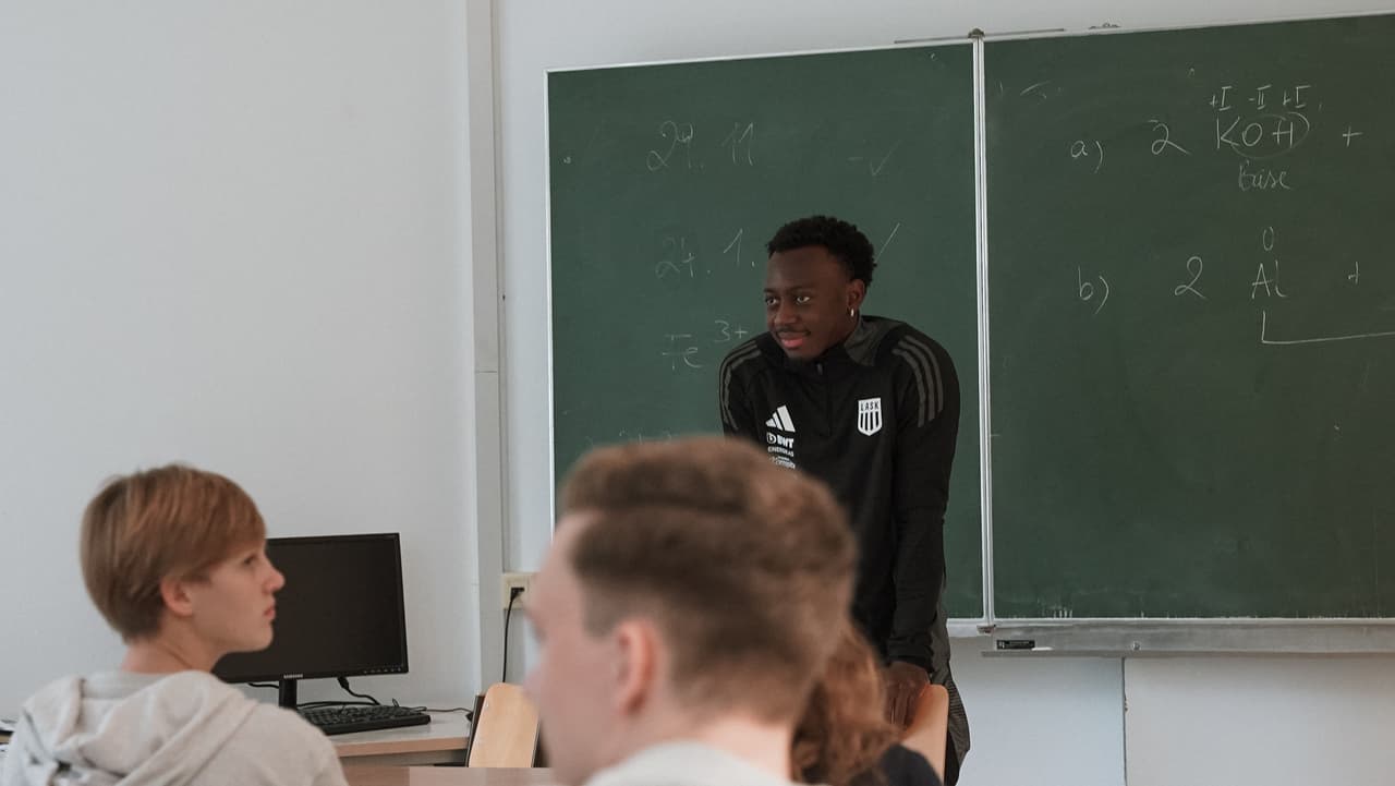 "It was a great experience for me. The students asked many good questions, not only about football but also about other topics. I tried to answer everything as best as I could," said "Professor" Bello, who wouldn't want to miss this school visit for the world. The class, filled with passionate LASK fans and football enthusiasts, was well-prepared. The questions ranged from his time in the U.S. to his views on the new European competition format, his triumph with the national team at the 2021 Gold Cup, his daily training routine, and even the upcoming U.S. presidential election.