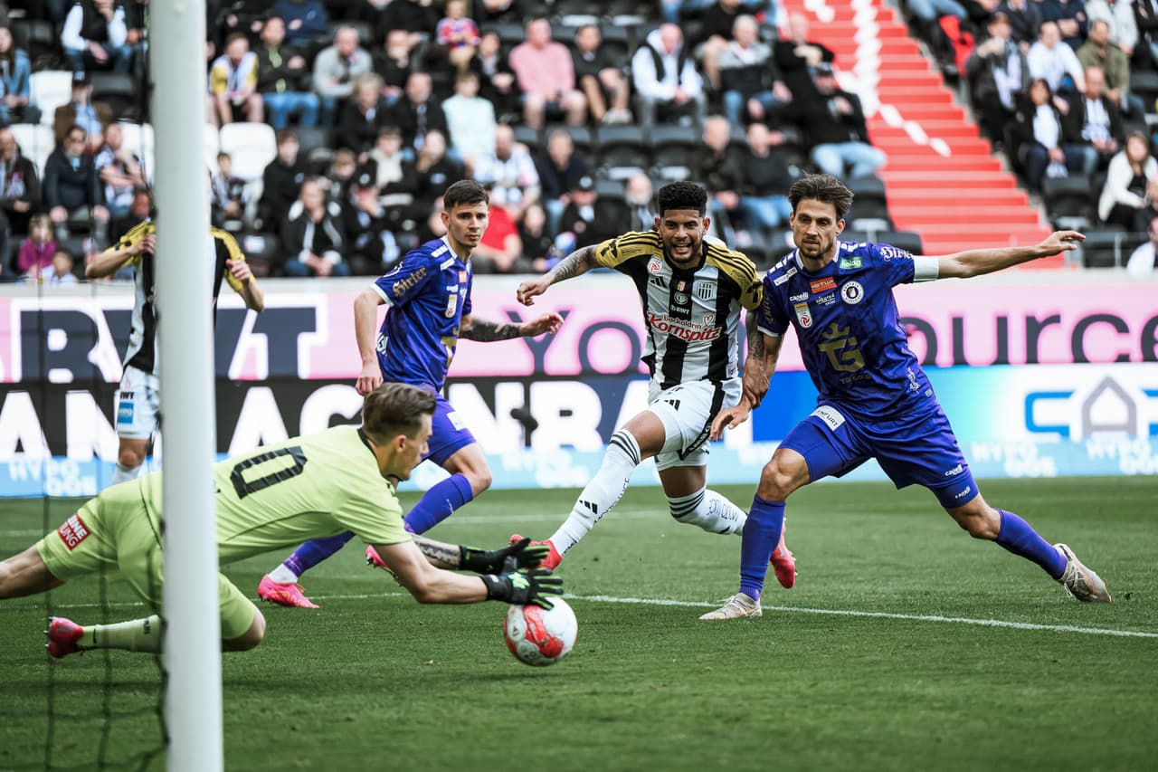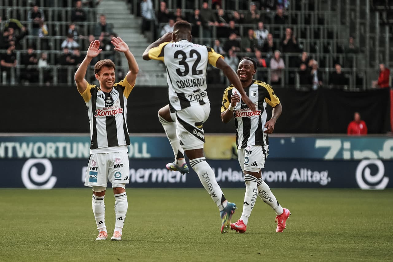 In the 23rd minute, Zulj had a shot inside the box but it was blocked. The same fate befell Krystof Danek shortly after, before the breakthrough finally came in the 26th minute: Ismaila Coulibaly found Danek with a perfect pass into the right half-space, Danek then set up Sascha Horvath, who — just like in the first leg on Tuesday — scored the opening goal for the Black-and-Whites. Only two minutes later, Danek narrowly missed, hitting the side netting. But just before the halftime whistle, the goal anthem rang out again in the Raiffeisen Arena: A perfect long ball from Andrade over the defense found Florian Flecker, who powered through and made it 2–0 in the 42nd minute.