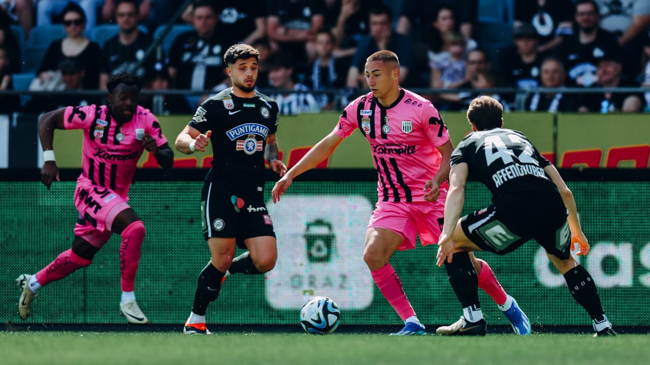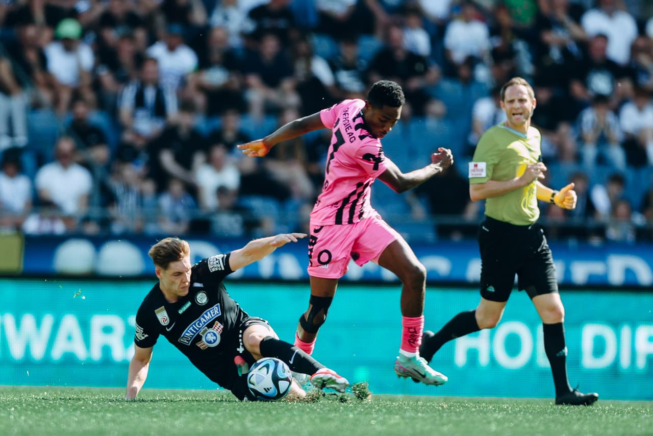 The game initially featured the expected high intensity, with many duels and transition situations, although the Graz team demonstrated a much better ability to convert these into scoring opportunities. This was evident, for example, in the 18th minute when Mika Biereth, following a quick counterattack by the home team, was thwarted by Tobias Lawal's foot save. Seconds later, he failed to put the ball into the net from close range after a corner.