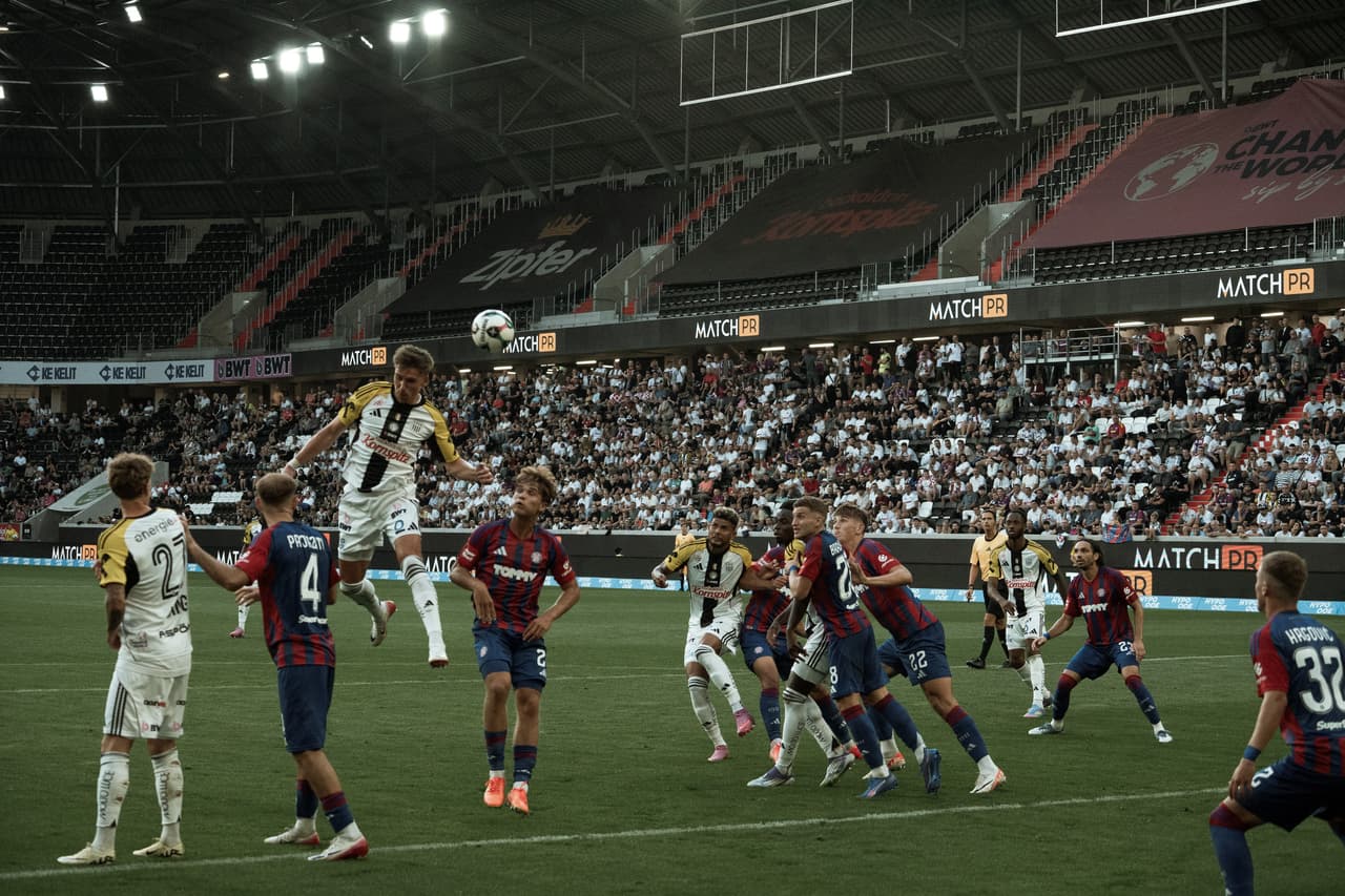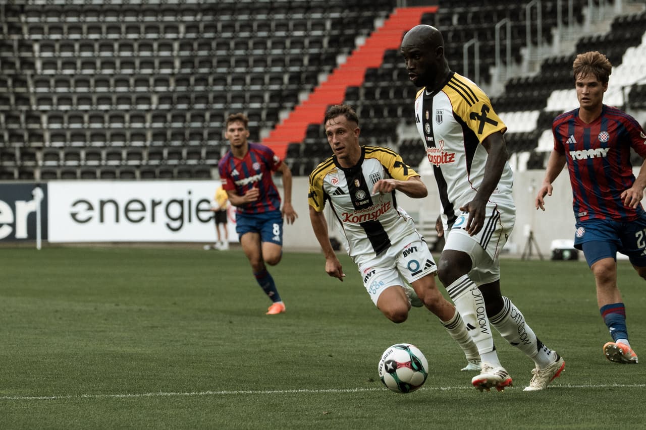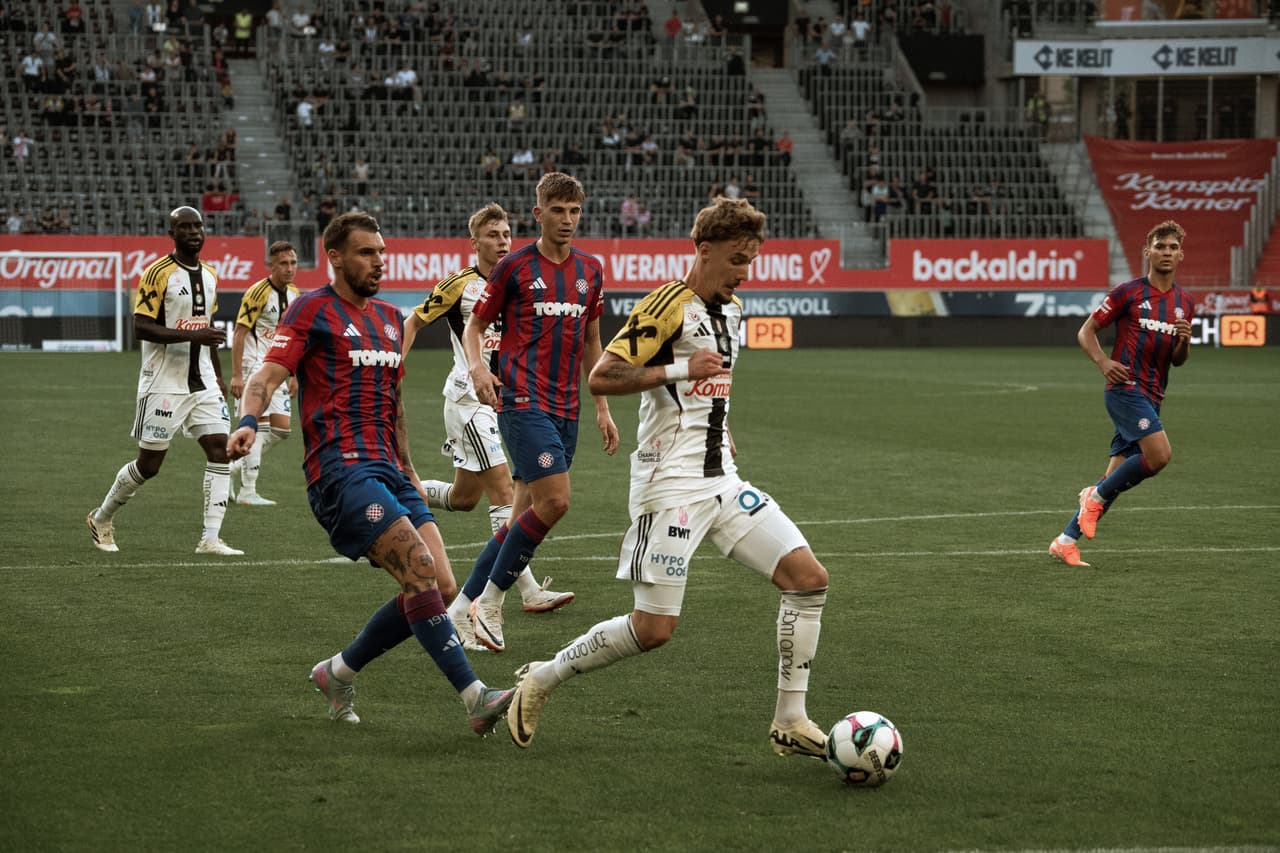 The second half began with no personnel changes and a LASK side that showed some neat passing combinations in possession. Around the 64th minute, they advanced nicely down the left wing, and the ball eventually fell to Krystof Danek, who missed the target at the far post. Two minutes later, LASK goalkeeper Lukas Jungwirth was called into action during a double chance for the visitors: he parried a shot from Marko Capan and was also on hand to stop the rebound from Noa Skoko.