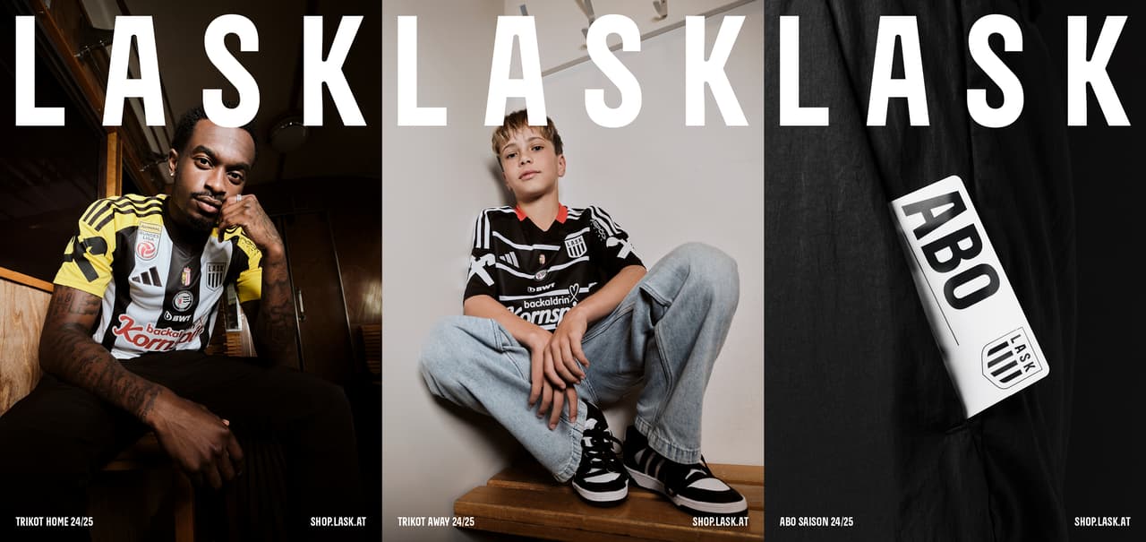Through the partnership with the global brand Adidas and 11teamsports, which was presented on May 8 during the Partner Day, LASK ushered in a new era in the equipment sector. With the upcoming opening of the new fan shop, there will soon be an opportunity to immerse yourself in the black-and-white fan world at the Raiffeisen Arena. The new collection is already available in our online shop.