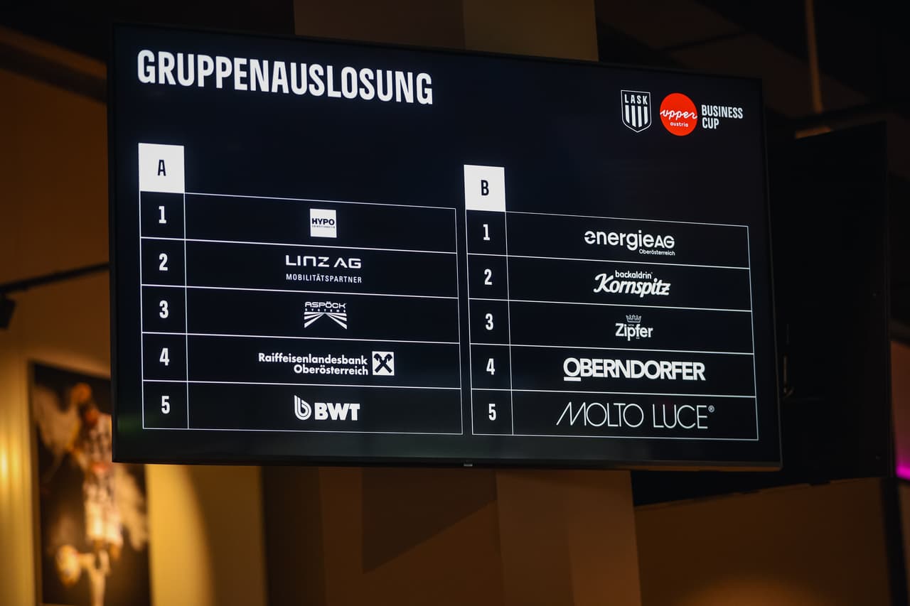 Premiere für die erste Auflage eines Fußballturniers der außergewöhnlichen Art: Zehn starke Partner des LASK matchen sich im Upper Austria Business Cup am 15. März in der Raiffeisen Arena um die begehrte Siegestrophäe. Im Rahmen der Auftaktveranstaltung am Mittwochvormittag im BWT Business Club wurden unter anderem die beiden Gruppen ausgelost.