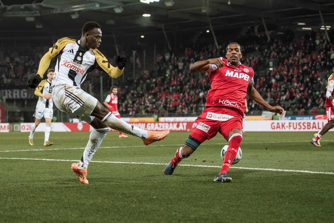 Die schwarz-weiße Führung sollte jedoch nicht lange halten. Bei einem von insgesamt sieben GAK-Cornern in Hälfte eins stieg Donovan Pines am höchsten und köpfelte zum Ausgleich für die Gastgeber ein (16.). Doch der LASK ließ sich nicht beirren und legte im Offensivspiel wieder einen Zahn zu. Erst prüfte Coulibaly aus der Ferne GAK-Goalie Jakob Meierhofer (18.), drei Minuten später musste sich der Schlussmann zunächst beim Schuss von Kasper Jörgensen, den er an die Latte lenkte, und beim anschließenden Kopfball von Krystof Danek strecken. Der erneute Führungstreffer für den LASK fiel trotzdem: Danek brachte eine kurz abgespielte Corner-Variante zur Mitte, dort war Samuel Adeniran zur Stelle – 2:1 (25.). Das letzte Highlight einer ersten Hälfte, in der der GAK zwar etwas mehr Ballbesitz verzeichnete und durchaus seine Gefährlichkeit aufblitzen ließ, die Linzer aber zu wesentlich mehr klaren Abschlüssen kamen.