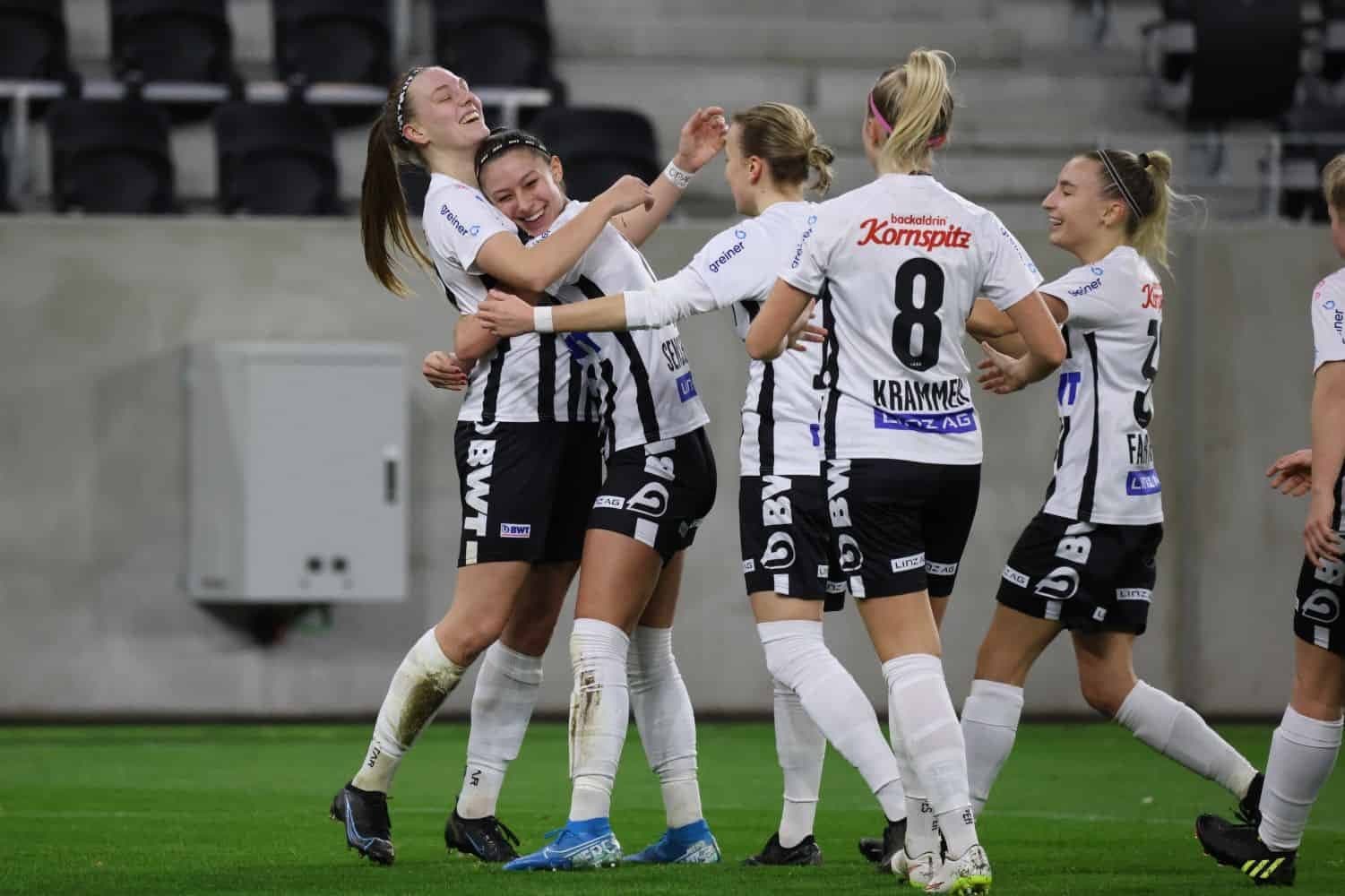In der 19. Minute folgte der nächste historische Moment: Kapitänin Katharina Mayr kam im Strafraum an den Ball und schloss wuchtig ab – 1:0! Die 23-Jährige geht damit als erste Torschützin in der Raiffeisen Arena in die schwarz-weißen Geschichtsbücher ein: „Das ist natürlich ein absolut geniales Gefühl. Dass uns der LASK wenige Tage vor der Eröffnung der Raiffeisen Arena den Vortritt lässt, ist ein großartiges Zeichen der Wertschätzung.“ Die Athletikerinnen siegten im Test gegen den Zweitligisten aus Geretsberg schließlich souverän mit 4:1 (2:1).