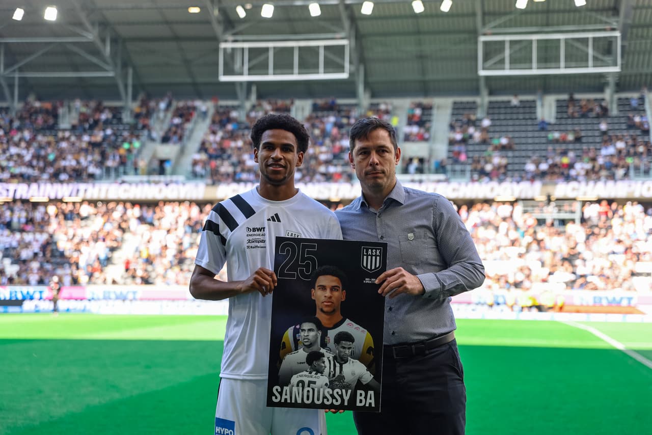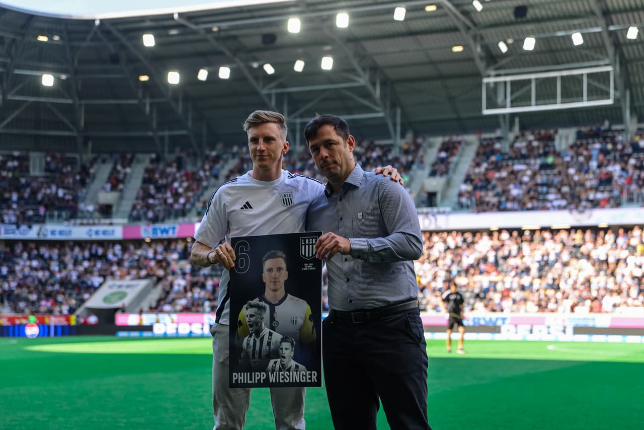 Vor dem Spiel hieß es Abschied nehmen von vier LASK-Akteuren, die zum Teil eine Ära geprägt haben und maßgeblich zur jüngeren Erfolgsgeschichte der Athletiker beigetragen haben. Die gesamte Mannschaft stand für Sanoussy Ba, Felix Luckeneder, Peter Michorl und Philipp Wiesinger Spalier, ehe Geschäftsführer Sport Radovan Vujanovic dem Quartett ein Erinnerungsbild als Präsent überreichte und sich die vier Profis ein letztes Mal von der schwarz-weißen Wand gebührend feiern lassen durften. Wir sagen Danke für unzählige Gänsehautmomente und denkwürdige Auftritte im schwarz-weißen Trikot, die auf ewig in Erinnerung bleiben werden!