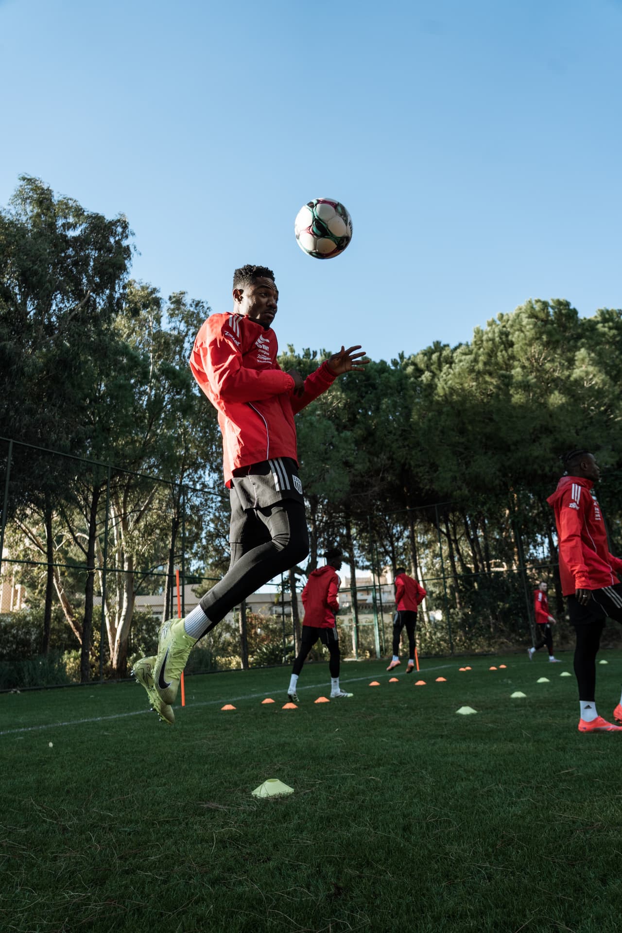 Pünktlich zum imaginären Krähen des Hahns enthüllten zwei LASK-Profis das Geheimnis des Vorabends: George Bello und Melayro Bogarde war es vorbehalten, in die Rolle der Social-Media-Administratoren zu schlüpfen und die schwarz-weißen Anhänger durch Tag acht zu führen. Eine wohlbedachte Entscheidung, wie sich herausstellte, wusste das Duo doch abwechslungsreiche Einblicke in den Alltag in Belek stets mit der nötigen Prise Humor zu vereinen. Zumindest, solange kein Wettbewerb auf dem Spiel stand, doch dazu später mehr. Schon bei der ersten Mahlzeit erwiesen sich die beiden als Brüder im Geiste, unterschied sich der Frühstücksteller mit Brot, Eiern und frischen Früchten sowie einem Glas Apfelsaft doch nur marginal. Während die Begutachtung der Aktivierungsübungen des Kollegen Danek zufriedenstellend ausgefallen war, hatte es den Zweien ein Mini-Shuttle angetan, um den eigentlich überschaubaren Weg zum Trainingsplatz zu bewältigen. Nur zu Kamerazwecken, versteht sich, jedoch nicht ohne zuvor des Zeugwarts Urteil über die örtlichen Gegebenheiten einzuholen. "Wir haben Top-Bedingungen, super Wetter, einen super Platz", gab dieser sogleich grünes Licht für Training Nummer zehn.