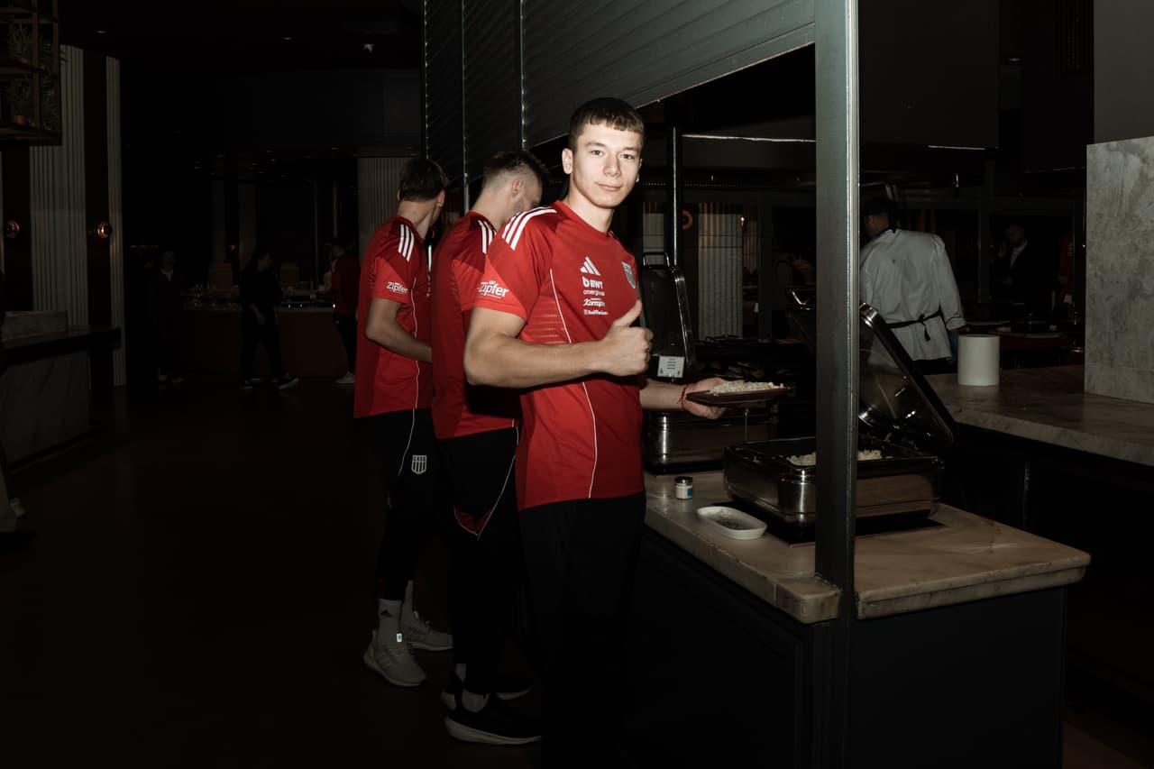 Während herzliche Geburtstagsglückwünsche an Jubilar Christoph Lang ebenso wenig fehlen durften, wie ein sportlergerechtes Mittagessen, waren die Reaktionen über das anstehende Nachmittagsprogramm bis dato nicht überliefert: Aufgeteilt in zwei Gruppen, werkten die einen im Gym, die anderen durften in Form von Lauftests ihren Fitnesszustand unter Beweis stellen, ehe getauscht wurde. Als besonders unermüdlich erwiesen sich dabei die Gewinner Krystof Danek und Kasper Jörgensen, doch auch Torhüter Tobias Schützenauer war der verdiente Applaus angesichts seiner persönlichen Bestleistung gewiss. Das Abendessen dürfte den 27 Spielern ob des harten Tages besonders gemundet haben.