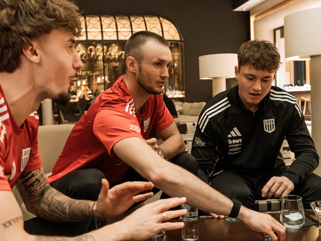 Passend zu den wiederaufgeladenen Akkus der Spieler beendete auch die Sonne ihr zwischenzeitliches Versteckspiel und wagte sich zwischen vereinzelten Wölkchen hervor, während es am Platz über 90 Minuten ohnehin heiß hergehen sollte. Eine Turnierform hatte das Trainerteam unter anderem für den Vormittag auserkoren, freilich nicht, ohne das Siegerteam in Form eines Jubelfotos entsprechend zu würdigen (siehe Titelbild). Siegermentalität erforderte unterdessen auch das Nachmittagsprogramm. Athletik war wieder einmal angesagt, zwei Gruppen schufteten abwechselnd im Gym sowie im Nebenraum in Form eines Zirkeltrainings. Erneut eine Sache für Leopold Angerer und Ralf Neumann, deren strenge Aufsicht nichts dem Zufall überließ und einmal mehr dafür sorgte, dass sich die Abendaktivitäten vorrangig um regenerative Maßnahmen wie Sauna, Massagen und, nicht zu vergessen, ausreichend Schlaf, drehten. Tag 8 und damit die nächste Doppeleinheit soll schließlich nicht minder energiegeladen gestartet werden - Selbiges gilt übrigens für den geplanten Takeover, im Zuge dessen zwei LASK-Profis (Namen sind der Redaktion bekannt) für unseren Instagram-Kanal durch den Tag führen werden.