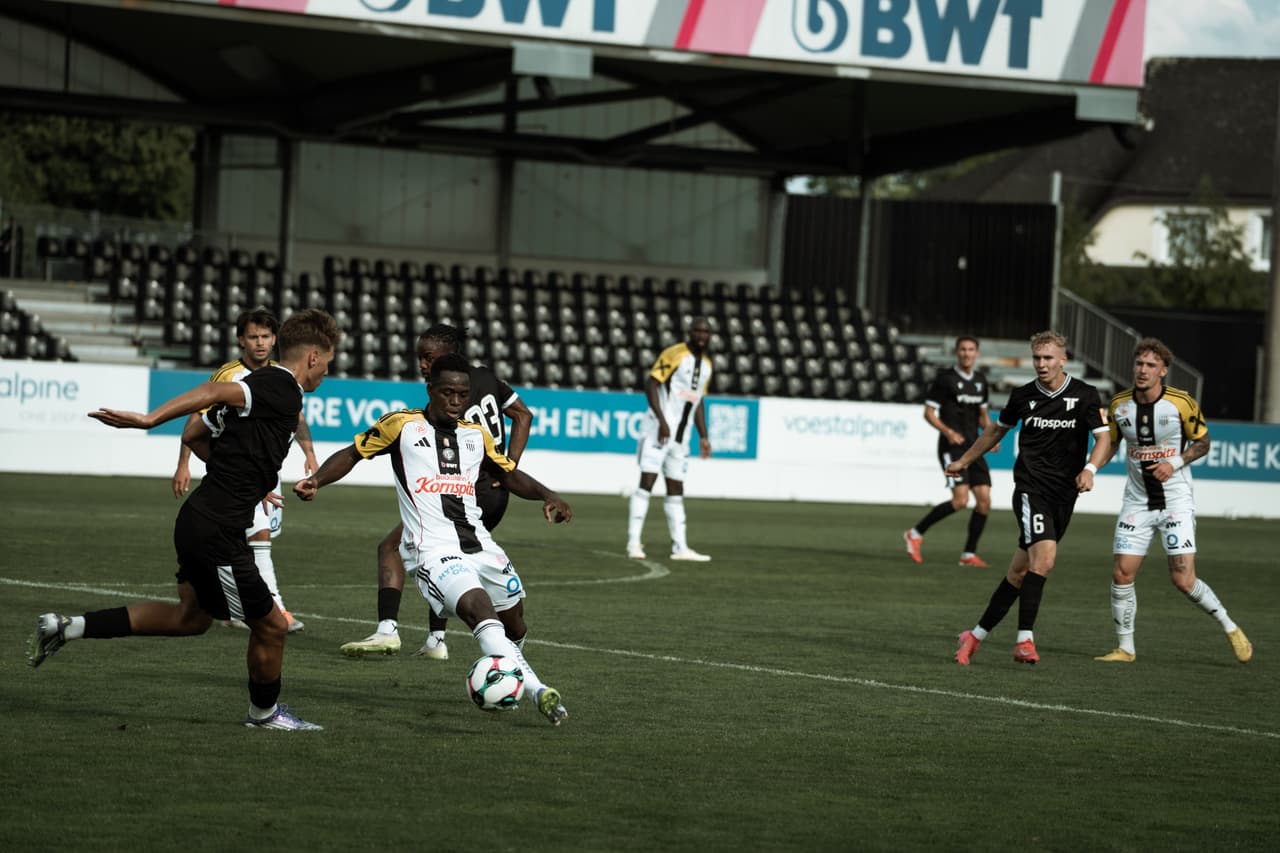 Der LASK legte in Hälfte eins einen sehenswerten Auftritt hin und dominierte den Gegner von Beginn an in allen Spielphasen. Das machte sich bereits nach vier Minuten auf der Anzeigetafel bezahlt. Nach Zusammenspiel zwischen Sascha Horvath und George Bello schickte der US-Amerikaner seinen Landsmann Samuel Adeniran auf die Reise, der den Richtung zweite Stange mitsprintenden Krystof Danek erblickte und ideal bediente. Der Tscheche brauchte den Ball nur noch über die Linie zu befördern.