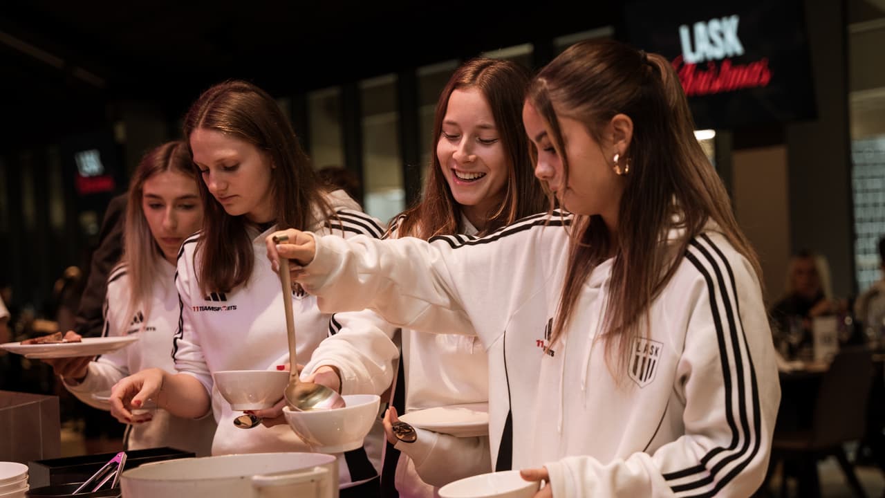 Profis, Amateure, die LASK Frauen, der gesamte Staff, Mitarbeiter:innen, Ehrenamtliche sowie Sponsoren und Partner fanden sich am Sonntag zum gemeinsamen LASK Christmas Lunch in der Raiffeisen Arena ein, um die weihnachtliche Stimmung in vollen Zügen zu genießen und sich im gemütlichen Beisammensein auszutauschen.