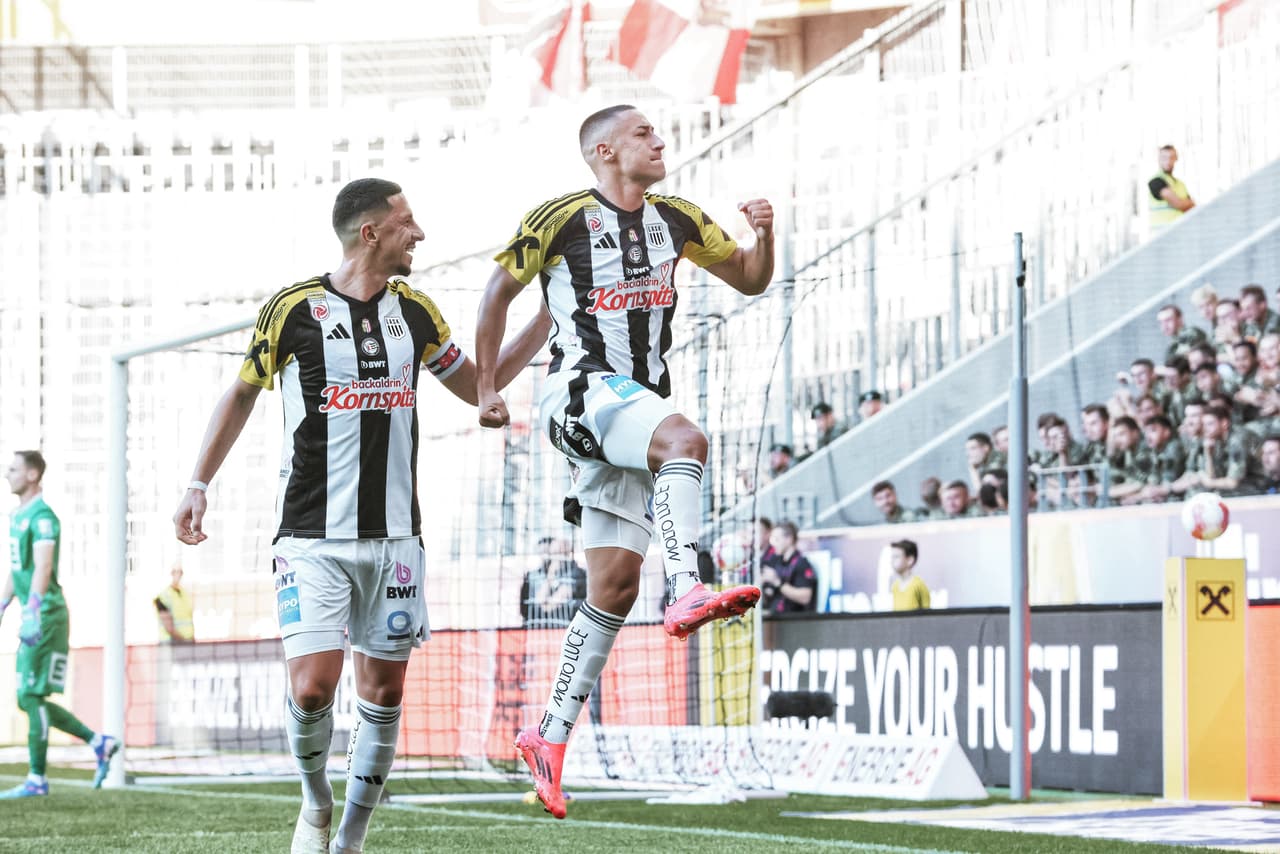 The lead gave the hosts a boost as they increasingly took control of the match. They managed to move the ball around well at times, while still keeping pressure in the final third. This approach was rewarded with a second goal: after a cross towards the far post, George Bello was brought down, prompting referee Julian Weinberger to award a penalty following an on-field review. Marin Ljubicic calmly converted the penalty to make it 2-0, marking his third goal of the season. However, the newly promoted side from Graz remained dangerous and pulled one back after half an hour with a deflected shot from Romeo Vucic, reducing the score to 2-1.